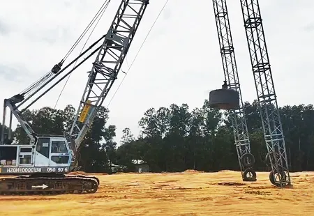 Dynamic Compaction + DCM: +50% Bearing Capacity, –40% Piles, Millions Saved.