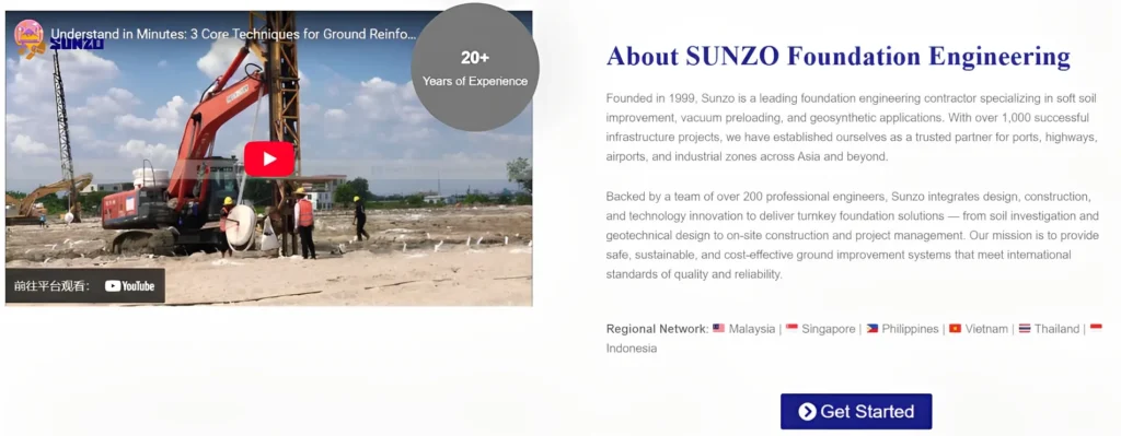 Founded in 1999, Sunzo is a leading foundation engineering contractor specializing in soft soil improvement, vacuum preloading, and geosynthetic applications. With over 1,000 successful infrastructure projects, we have established ourselves as a trusted partner for ports, highways, airports, and industrial zones across Asia and beyond.