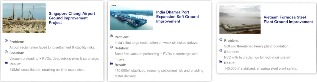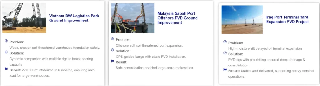 From vacuum preloading to offshore PVD, Sunzo provides proven ground improvement solutions tailored for ports, highways, reclamations & industrial zones.