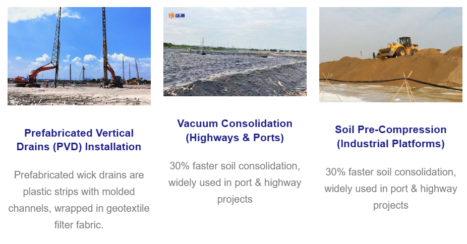Lebih 35 juta PVD luar pesisir dengan kapal ber-GPS: Penstabilan tanah marin yang boleh dipercayai, penghantaran tepat pada masa.